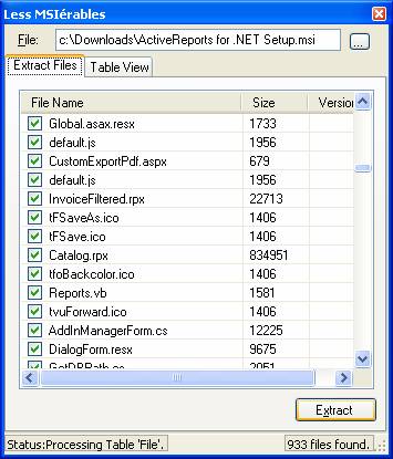 It’s a pretty simple interface, just use the … button to the right of the File text box to load an MSI file, you can view in the table on the screen. Use the Extract button to pull all the files out to a directory, very handy for xcopy style distributions.