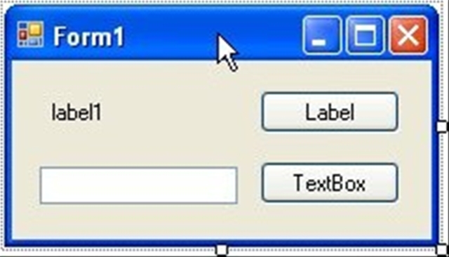 Let’s create a simple example. Create a new windows form app. Put on a label, a text box, and two buttons. When done, it should look something like this: