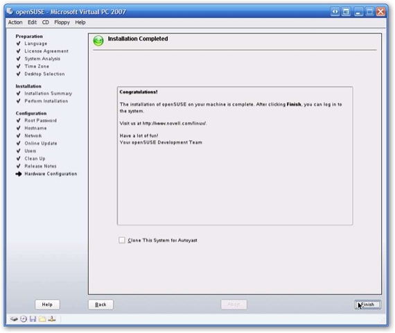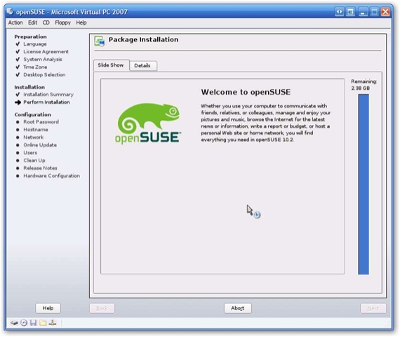 Installing openSUSE 10.2 on Virtual PC Step by Step