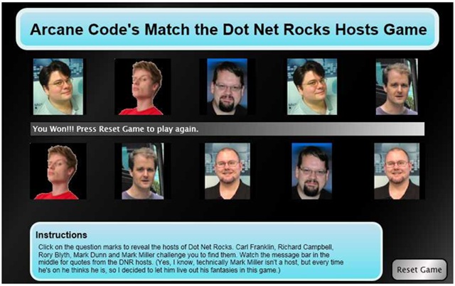 The Silverlight Match the Dot Net Rocks Hosts Game – Part 3 – The Javascript
