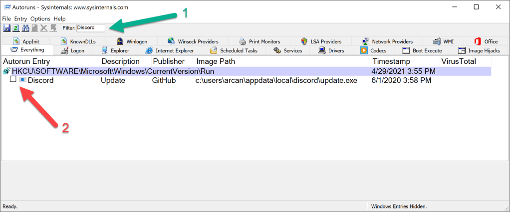 - Toward the right is the Show/hide area. Make sure the box beside "Hidden items" is checked ON.